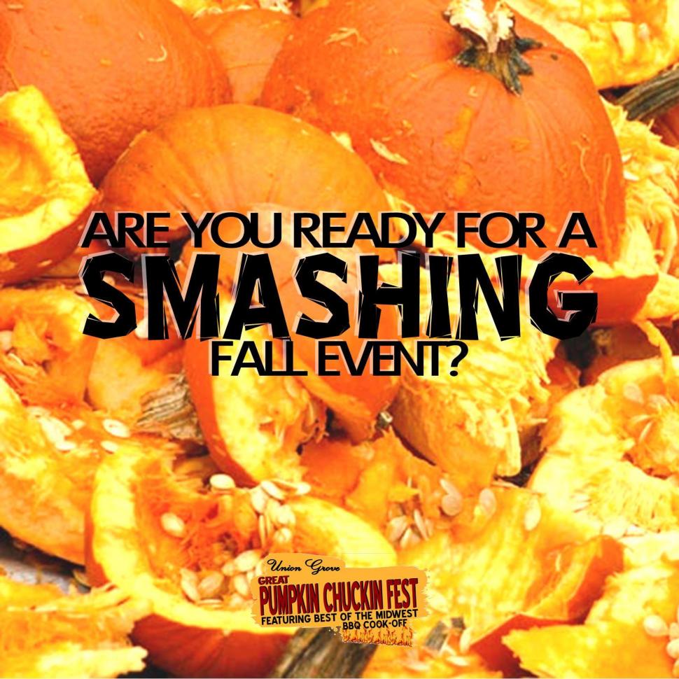 The Great Pumpkin Chuckin Fest located in Racine Co. fairgrounds. Food, Vendors, Kids activities & games, costumes, & contests Pumpkin Chuckin & KCBS!