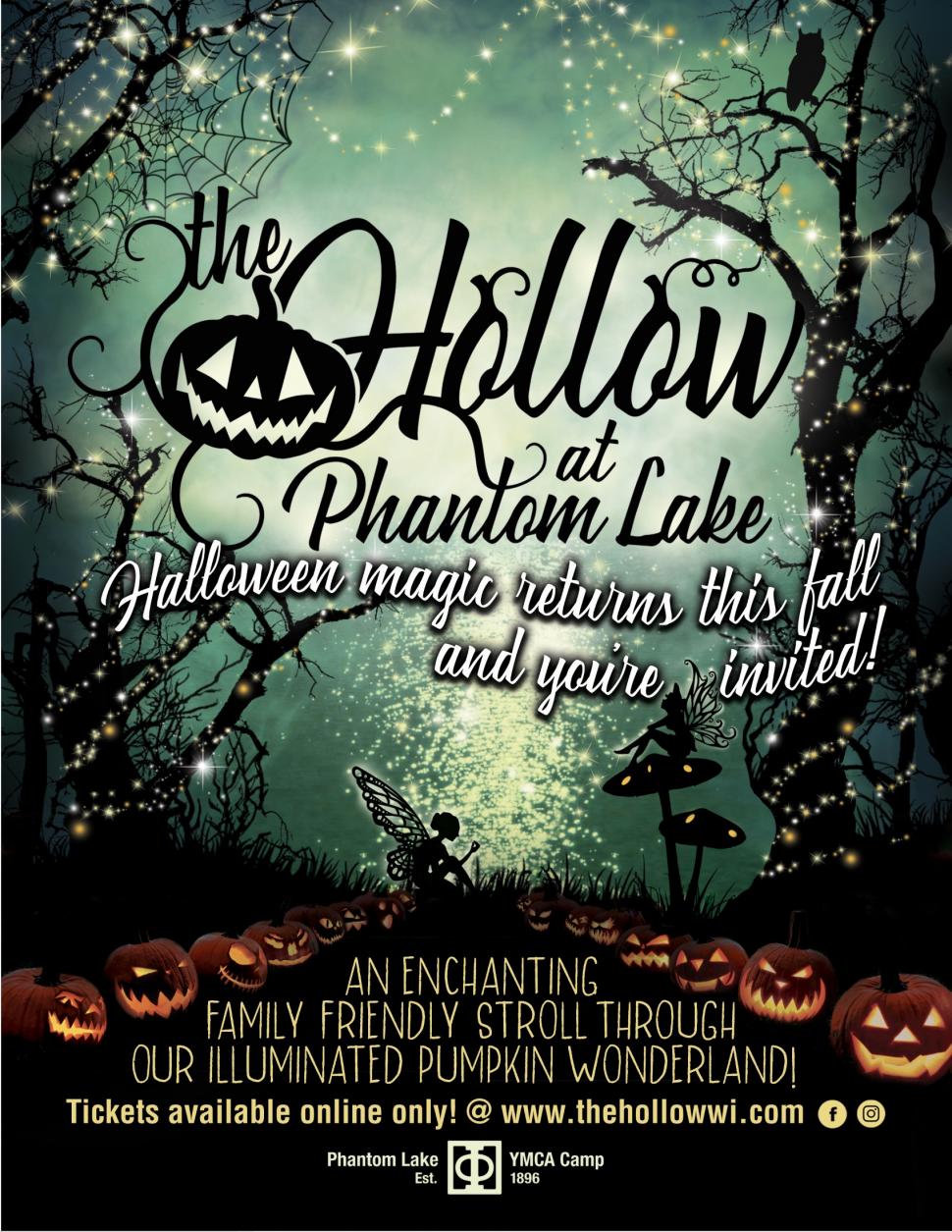 The Hollow at Phantom Lake returns this fall and you're invited! Stroll through our outdoor Jack O'Lantern wonderland. The only one of its kind in Wisconsin, you won't want to miss this unique experience. 3000 hand carved, illuminated, pumpkins adorn our enchanted forest trails! Halloween magic without the scare, this family friendly fundraising event is sure to become an annual tradition. More information @ www.thehollowwi.com