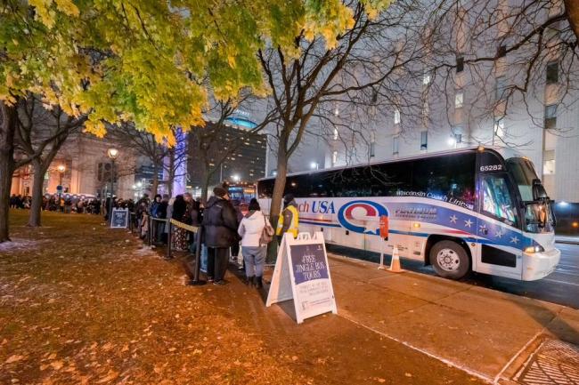 Jingle Bus tickets are $8 per person and must be purchased in advance. Spanish tours will be available on select evenings. Buses will depart from Courtyard Milwaukee Downtown, 300 W. Michigan Street. Jingle Bus parking is available at InterPark The Avenue Garage, 615 N. 2nd Street, for only $3, thanks to Interstate Parking. Please see the Jingle Bus information table for parking validation. Guests are invited to enjoy the vendors at the 3rd Street Market Hall while waiting to catch the Jingle Bus.